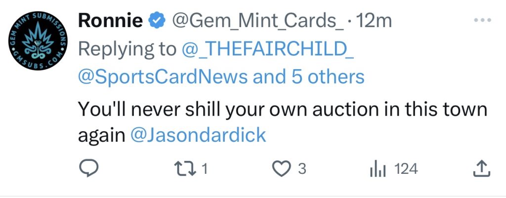 The owner of Gem Mint Submissions alluded to some kind of shill bidding activity from Dardick.