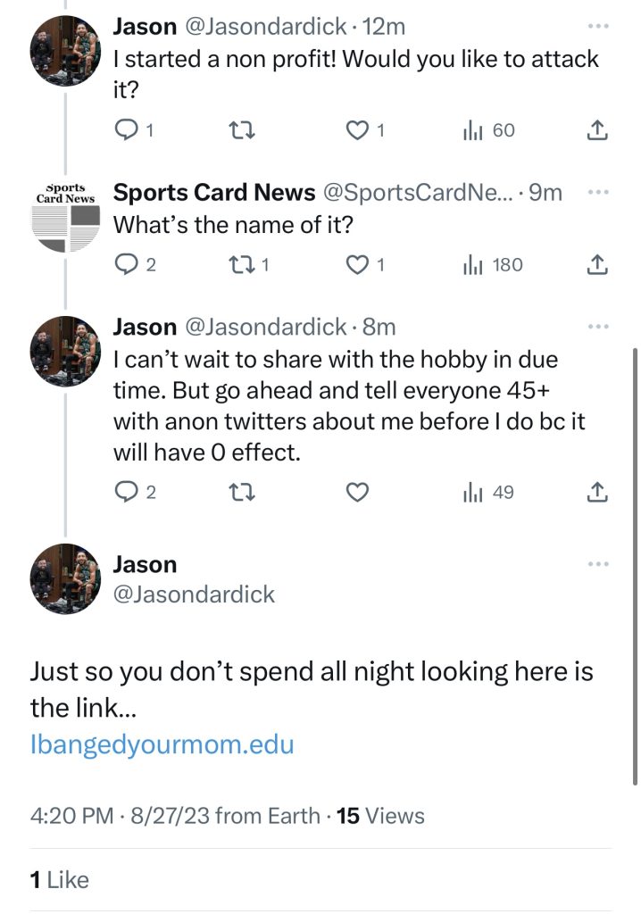 Jason Dardick of Dallas, Texas went wild on Twitter the other day, hurling mom jokes at the owner of Sports Card Radio!