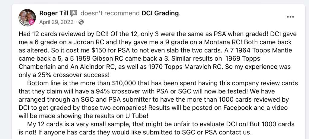 Another former customer of DCI Grading says that cards DCI graded came back altered from PSA. Including a Michael Jordan 1986-87 Fleer Rookie Card and a Joe Montana Rookie!