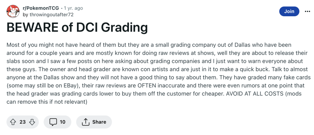 A poster on Reddit called Dardick a con artist and asserted DCI Grading was just looking to make a quick buck.