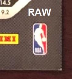 According to SuperDan, approximately the width of a dot was removed from the right back edge of the raw card. The bottom has been trimmed slightly less.