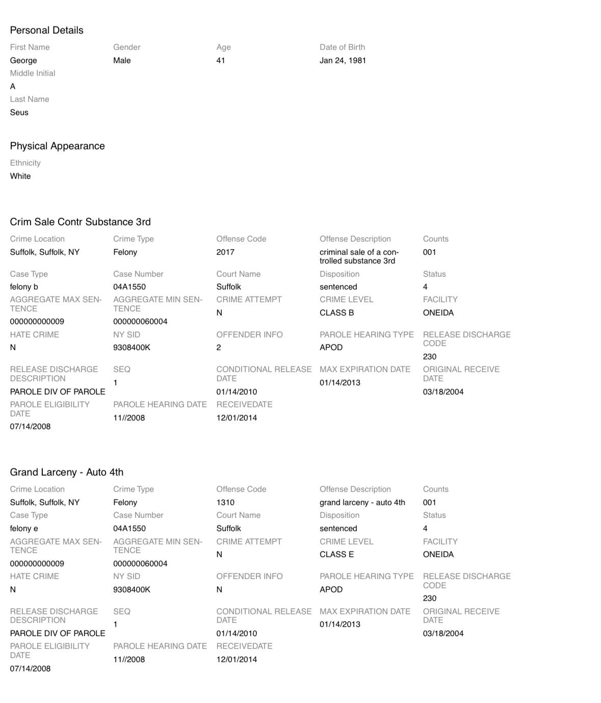 Including count 6, G spent multiple years in prison.