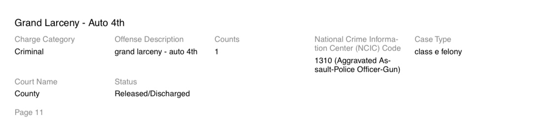 This included an assault on a police officer with a gun.
