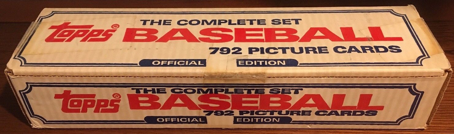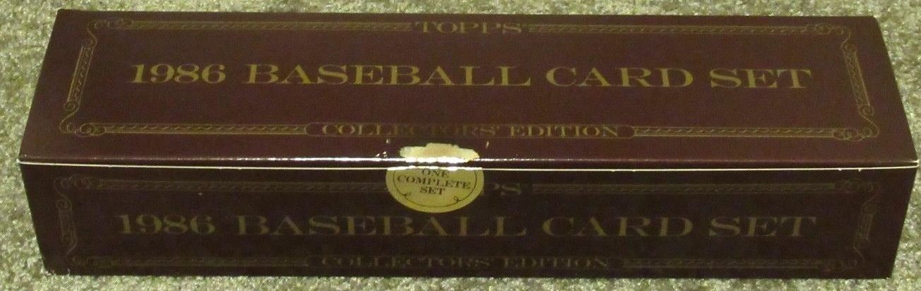 Complete sets of 1986 Topps Baseball cards come in several forms including Factory Set form in two different color boxes. One factory set in in a yellow colored box, the other factory set is in a white colored box.