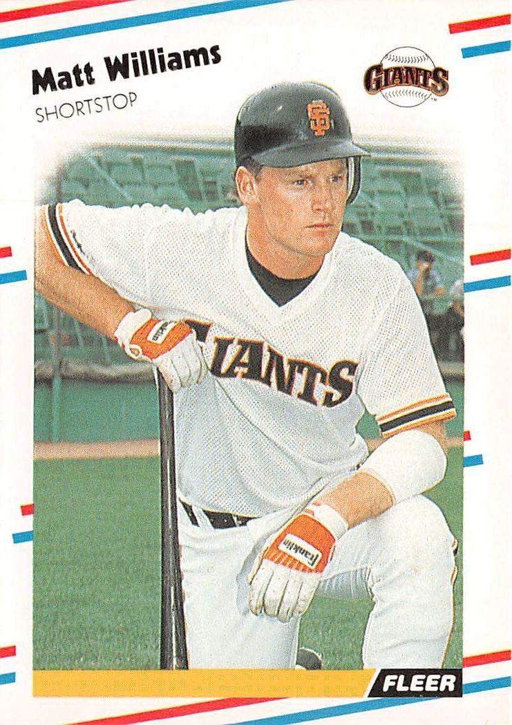 Other key rookie cards in the 1988 Fleer Baseball set include: 101 Matt Williams, 212 Roberto Kelly, 378 Edgar Martinez, 407 Jack McDowell, 441 Ken Caminiti, 538 Ron Gant, 539 Tom Glavine, and 569 Bill Ripken.