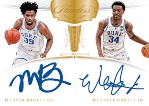 Flawless Rookie Autographs features on-card autographs from the top rookies taken in the 2018 draft, while the Premium Ink features the best of the best and commemorates college basketball’s star players with on-card autos.
