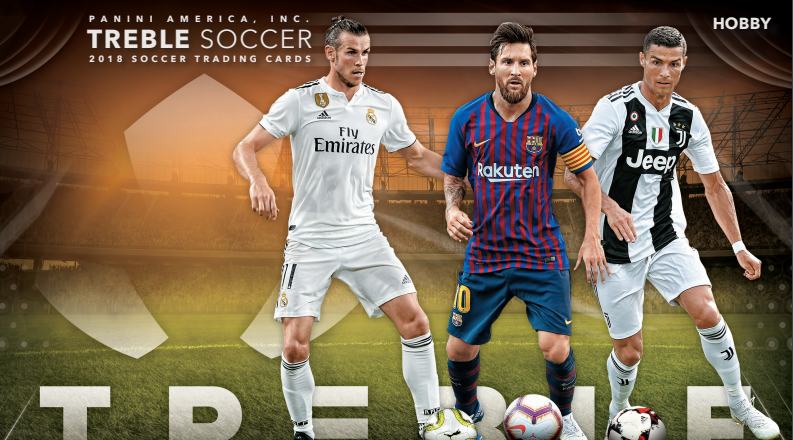 2018-19 Panini Treble Soccer comes with five cards per pack. Every box includes two insert cards, three parallels limited to 75 copies or less, and one Panini Premiere Rookie Card.