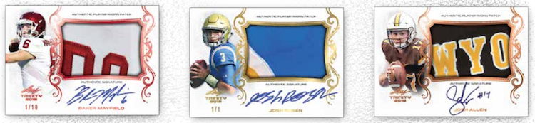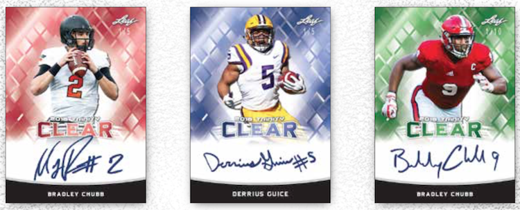 Just like the previous releases, this product will have on-card autographs, inscriptions, acetate and patches with an array of rainbows for each type of card. These will feature players such as Baker Mayfield, Josh Rosen, Nick Chubb, Sam Darnold, Sony Michel and Calvin Ridley to name a few. This release will also have some parallel types.