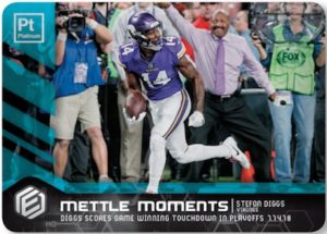 There will also be short-printed Hunt for Mettle Moments set which highlights 20 greatest historic NFL moments. Standard cards of this set will have (#’d/50) and Copper (#’d/25), Gold (#’d/10) and 1/1 Platinum versions.