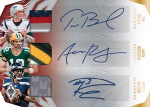 There will be Color Burst hot packs which fall one per box with color variations of base cards, inserts, and rookie cards. These will include base (1:6 packs), QB Vision (1:40 packs), Unmatched (1:40 packs), Adrenaline Rush (1:60 packs), Agility (1:120 packs) and Most Valuable (1:120 packs).