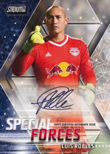 2018 Topps Stadium Club MLS Soccer will also feature today’s biggest stars of Major League Soccer in two insert subsets. These inserts include Profiles which highlights unique imagery of league icons on a stunning design and Special Forces which is firm to the elite playmakers across the league. Chase down autograph parallels of these insert cards and the hunt after the select Base Card Image variations which features active stars from the Base set with short-printed, thematic imagery.