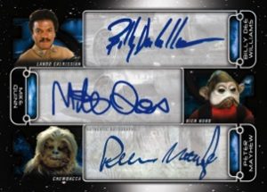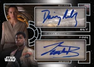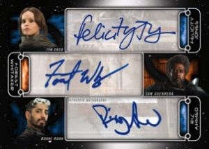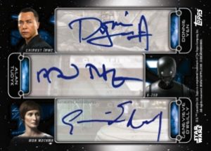 There will be Dual & Triple Autograph Cards, 6-Person Autograph Cards, Sketch Cards, and Source Material Fabric Swatch Cards. This release has 200 cards which focus on the characters. The 200 cards set include Blue (1:2 packs), Green (#/199), Purple (#/99), Gold (#/10) and Red (1/1) parallels.