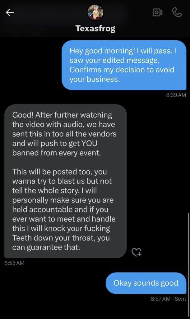 Update 11/10: The breaker, Breaks N Takes, threatened the customer in messages. saying he was going to come knock his teeth down his throat.