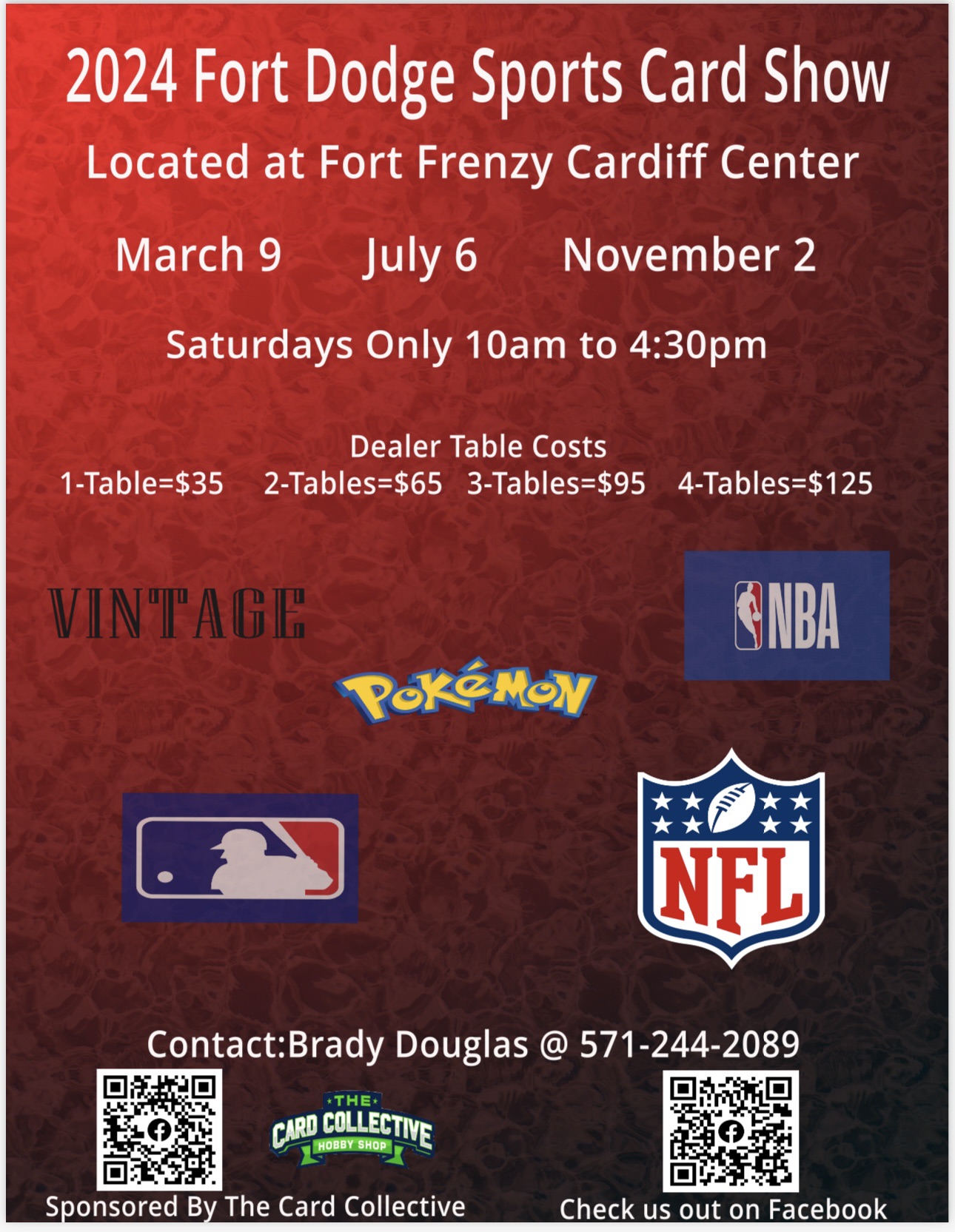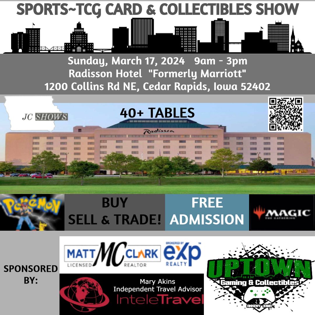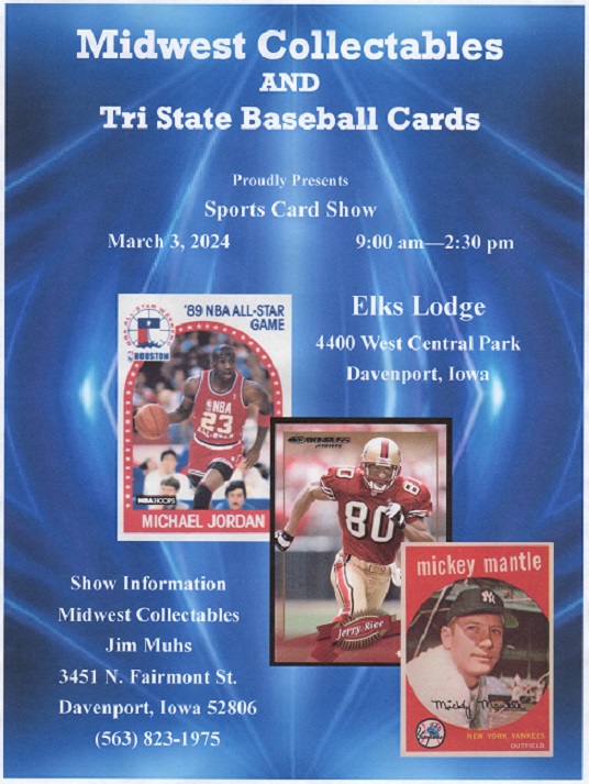 Mark your calendars for the largest card show in the Cedar Rapids area in many years! Multiple Dealers coming from Minnesota, and Illinois, and from all around Iowa, expect a wide variety of Pre-War Vintage to Modern Sports Cards. Let's not forget about TCG ~Pokemon, Magic The Gathering, Yu-Gi-Oh, & Weiss Schwarz Cards, Comics, and […]