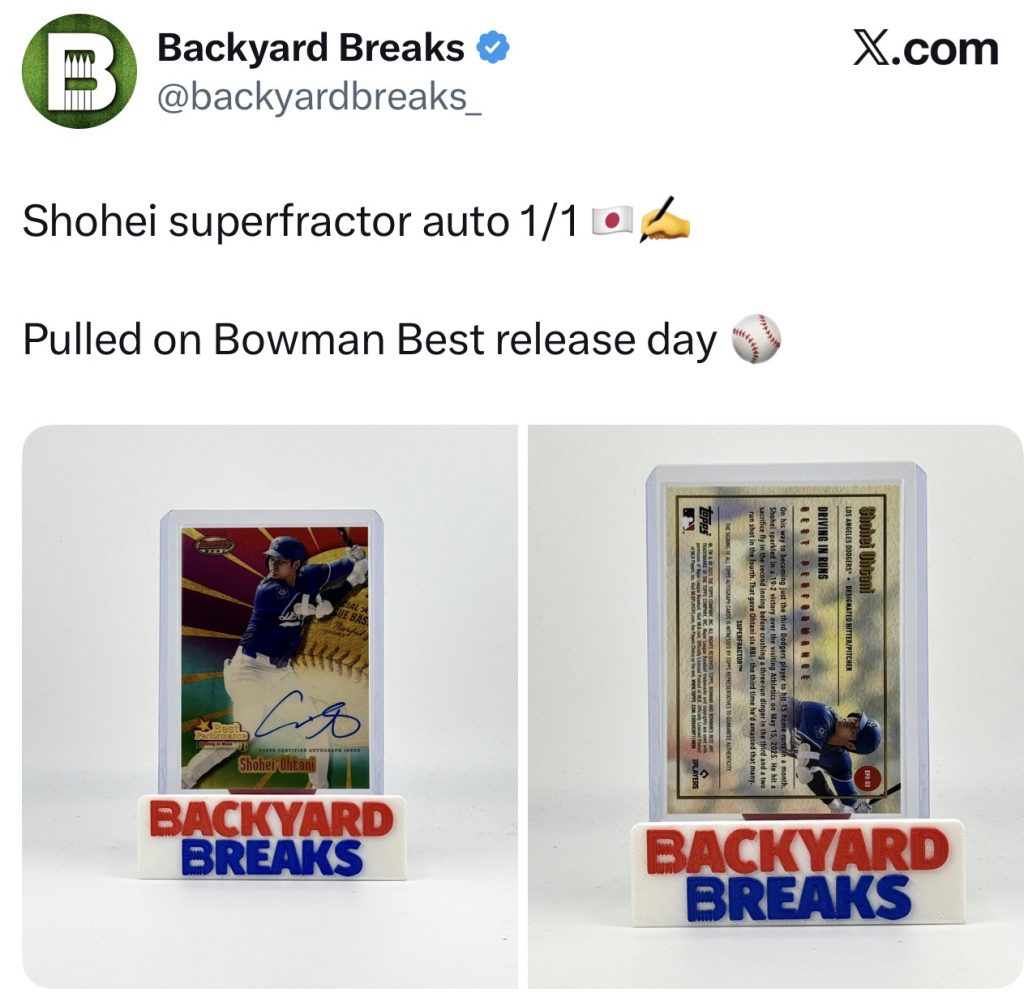 On release day for 2026 Bowman’s Best, while collectors fought checkout errors and sold-out messages, Backyard Breaks pulled a Shohei Ohtani 1/1.