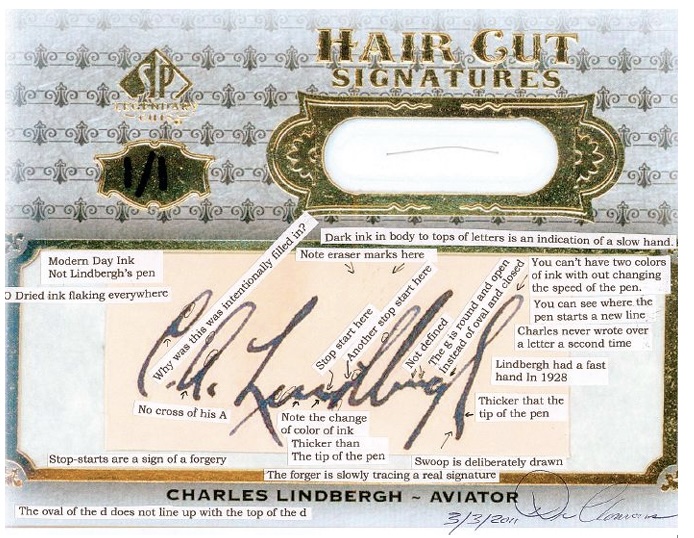 When collector Robert Sterpka pulled the redemption card and received the item, authentication expert Dan Clemons—who had studied Lindbergh’s handwriting for years with the aviator’s daughter Reeve—immediately identified it as an amateur forgery.