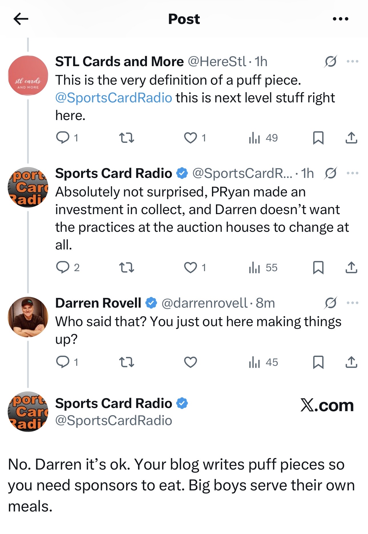 Texts between Pryan & Sports Card Radio 11/11/2025