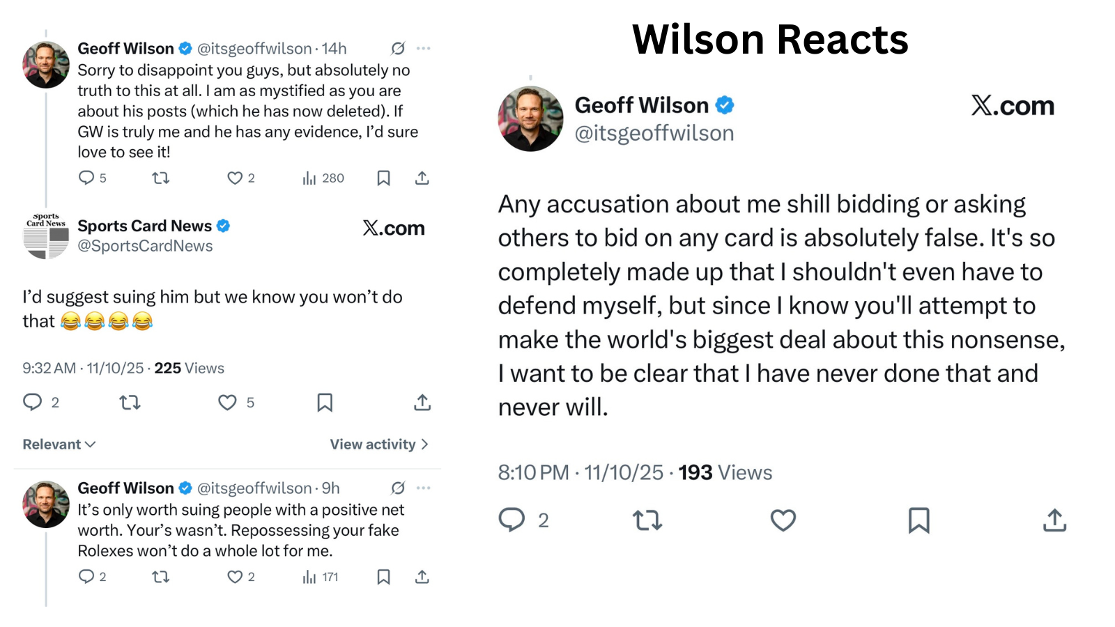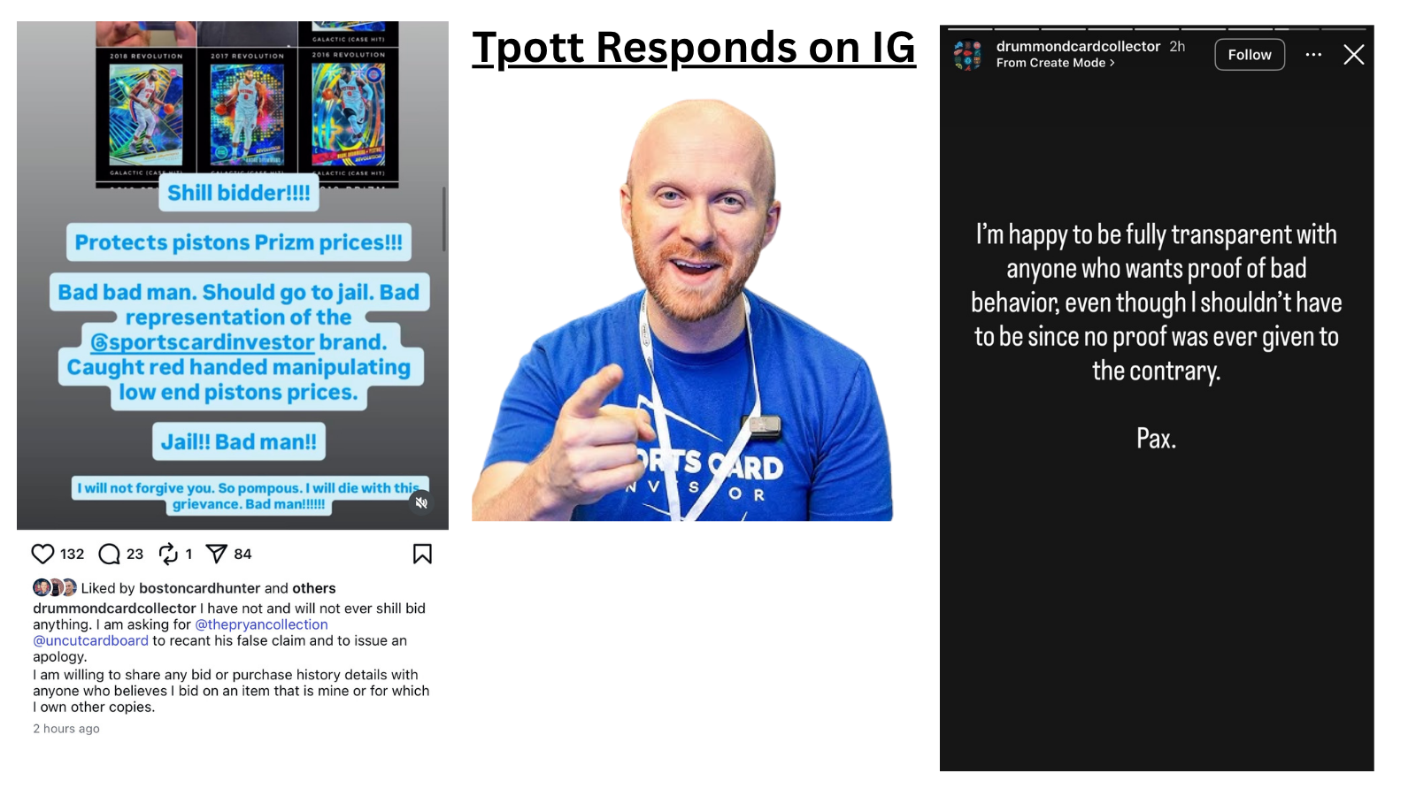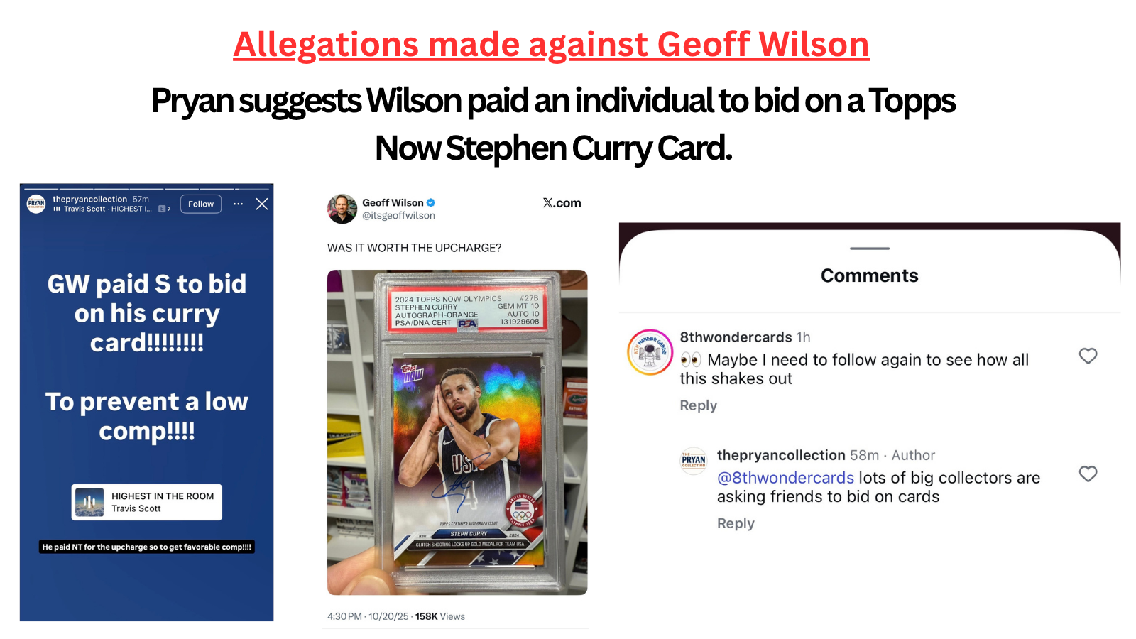 Involves the drama of the IG posts of PRyan implicating Geoff Wilson & Tpott in shill bidding/market manipulation.