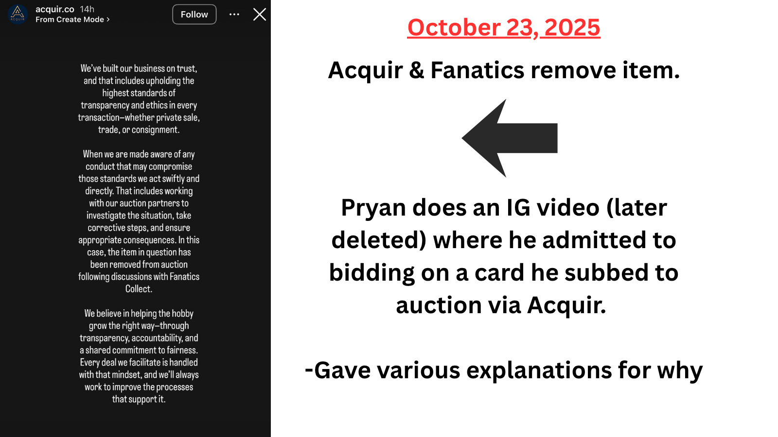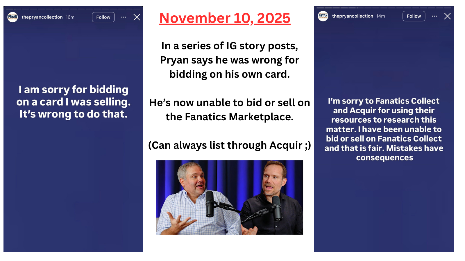 The drama involving Patrick Ryan (PRyan), Acquir (Jesse Craig) and the Fanatics Collect Marketplace.