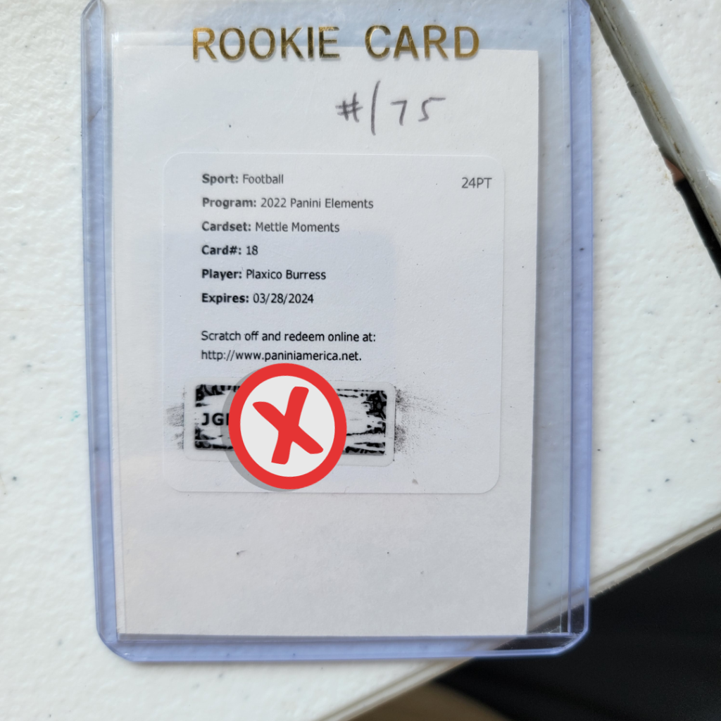 This collector’s specific grievance revolves around a Plaxico Burress ‘Mettle Moments’ redemption card, numbered to 75, from Panini’s 2022 Elements product. The card, which promises an autograph from the former NFL star, has a redemption window closing on March 28, 2024.
