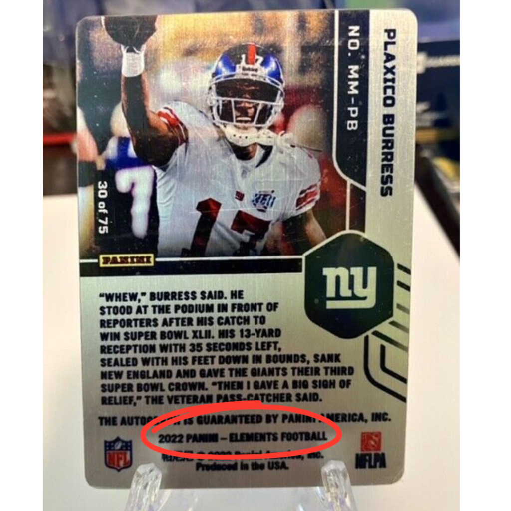 - Why were the Plaxico Burress cards, meant for 2022 Elements and supposedly waiting for autographs, found in the 2023 Plates and Patches boxes?