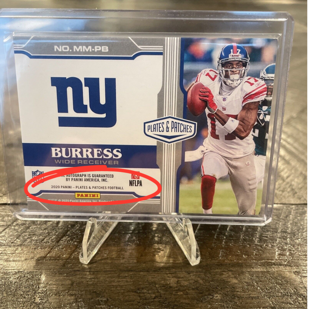 A similar Burress card was found in ’23 Plates and Patches that was meant for a previous product. On the back of this ‘Marquee Marks’ is 2020 Plates and Patches but the card was found in the 2023 product.