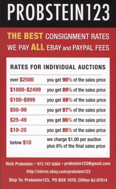 Have some expensive sports cards you need to sell on eBay? One of the top consignment sellers on eBay is Probstein123, and they are always actively accepting cards.