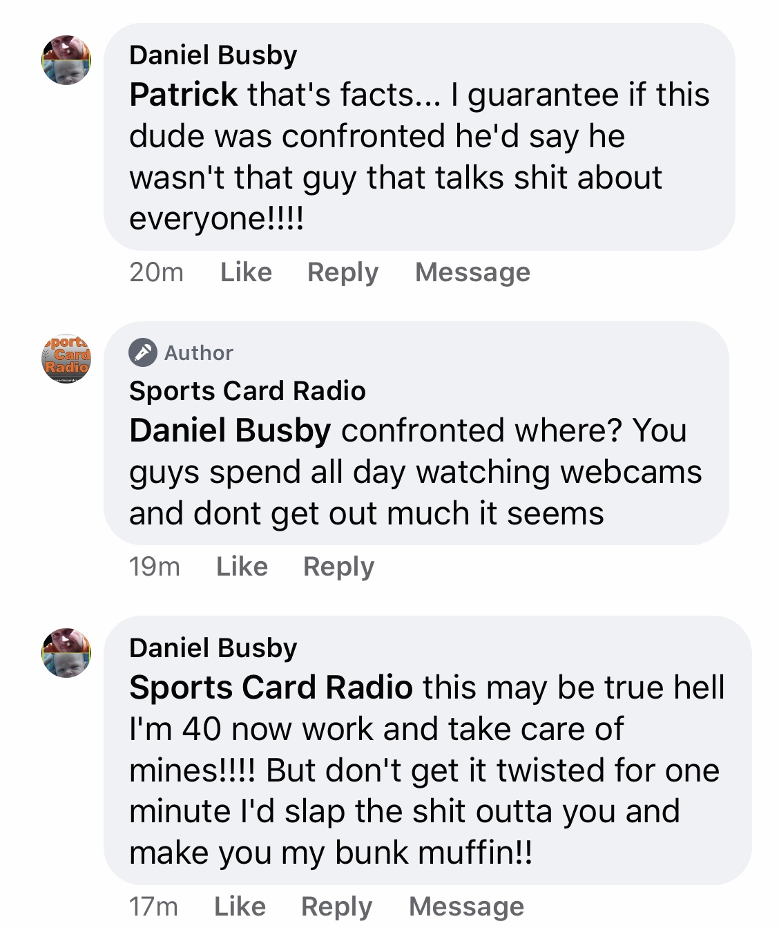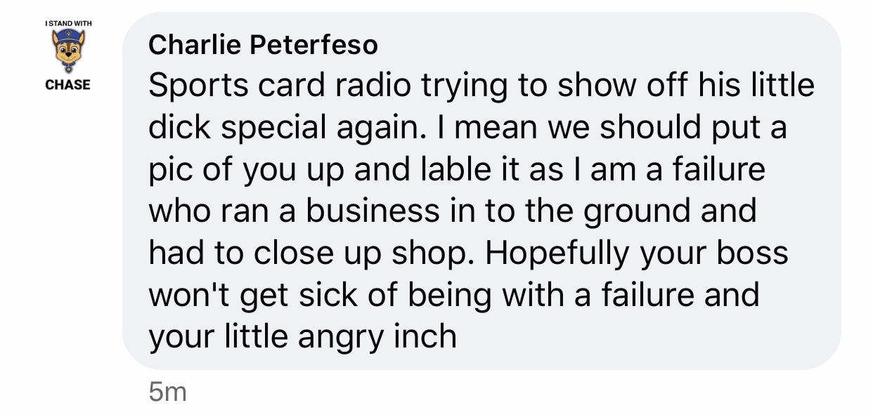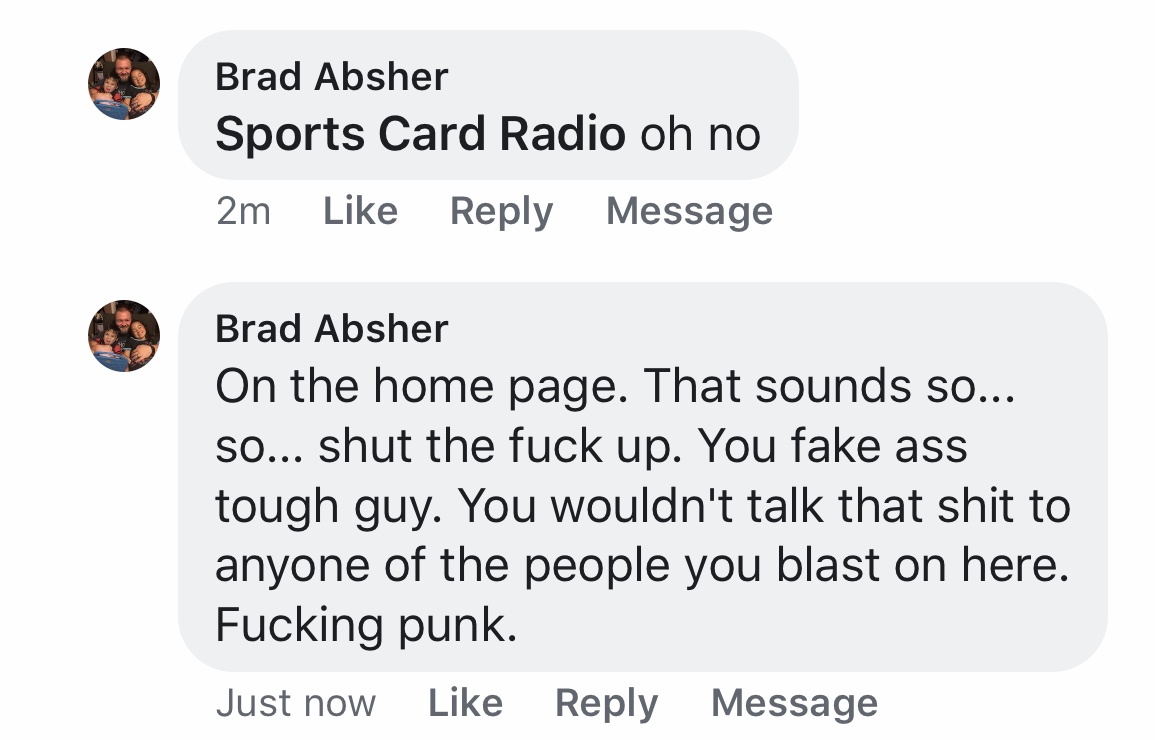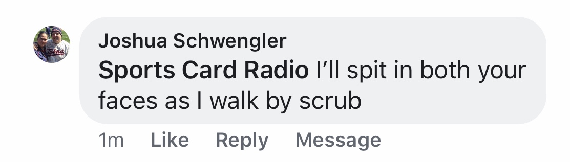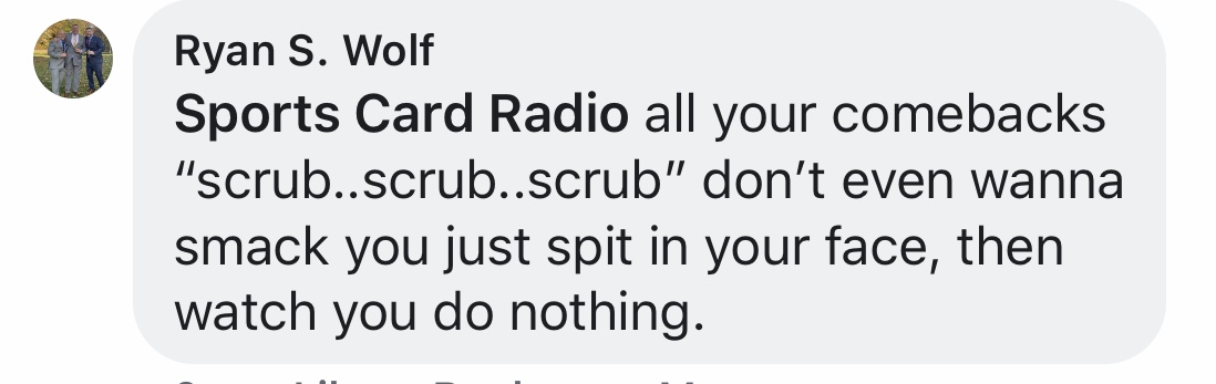 This card collector appeared to get triggered one day over a post on Sports Card Radio's Facebook page.