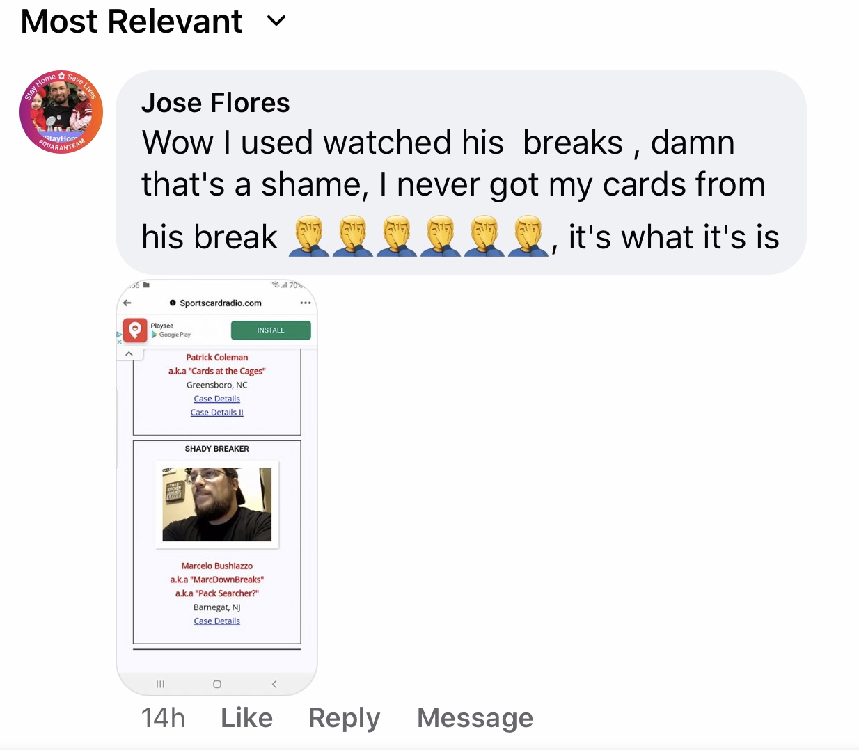Just some no-name group breaker who got mad about something posted on Sports Card Radio's Facebook Page.