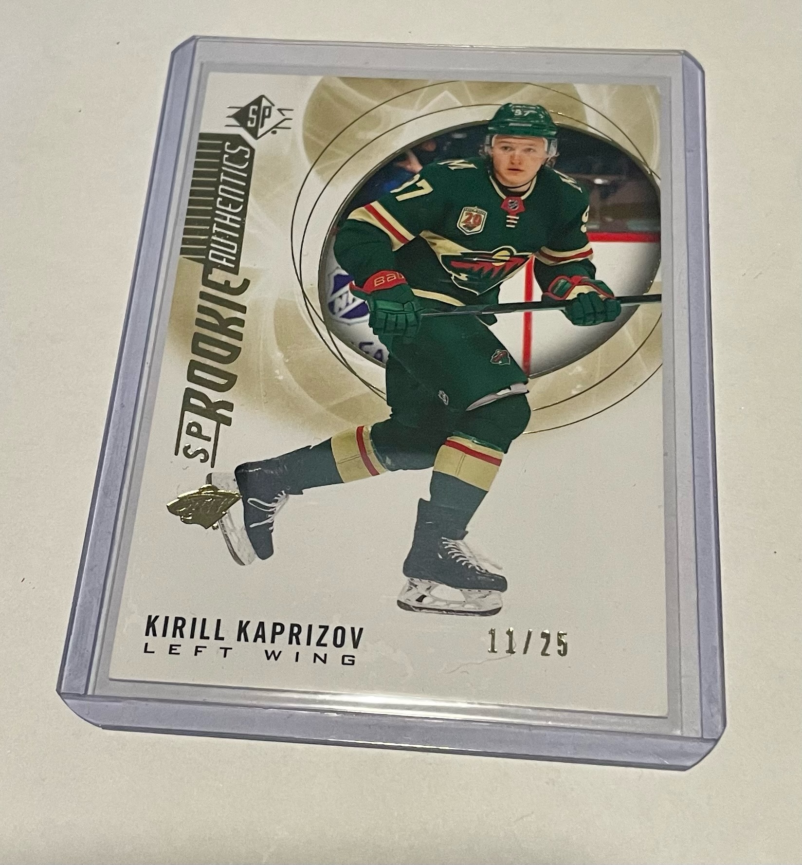 It was like hitting the lottery. A fan of hockey and an avid collector pulled an extraordinary card from an Upper Deck 2020-21 SP hockey hanger 3-pack. Specifically, it was a Kirill Kaprizov gold rookie authentics auto card. And this wasn’t just any card; it was serial numbered to 25.