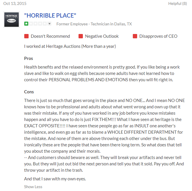 Heritage has sold items that turned out to be misrepresented and even not authentic in the past.